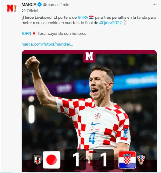 Uno de los cruces menos esperados de Octavos de Final, es el Japón vs Croacia, un partido dinámico. Donde los japoneses se ponían adelante en el marcador con gol de Maeda a los 43′ del partido y luego vino el empate croata a los Perisic a los 55′ minutos.