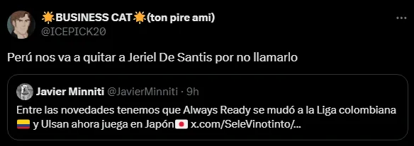 Por otro lado, la hinchada de Venezuela está asustada con perder al atacante del Caracas FC por no convocarlo. En este caso al tener la doble nacionalidad todavía es elegible para la Selección Peruana. Por ahora no ha sido llamado por ninguno de los equipos mayores, así que habrá que esperar quien termina quedándoselo.