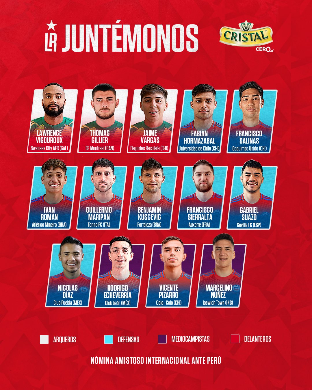 Este lunes, la Selección Chilena confirmó su lista de 23 convocados para el amistoso ante Perú. Dentro del grupo destacan dos jugadores de Universidad de Chile, quienes destacaron el duelo frente a Alianza Lima por los cuartos de final de la Copa Sudamericana. Se trata de los mediocampistas Lucas Assadi y Javier Altamirano.