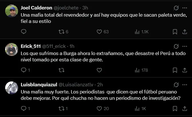 Los hinchas del balompié nacional tampoco se quedan atrás y no tienen ningún tipo de confianza en que realmente Agustín Lozano pueda realizar una buena gestión al mando de la Federación Peruana de Fútbol. Se habla bastante de intereses propios de quienes toman la decisión en las votaciones de Videna, por lo que ahora solamente queda estar al pendiente del anuncio en sociedad.