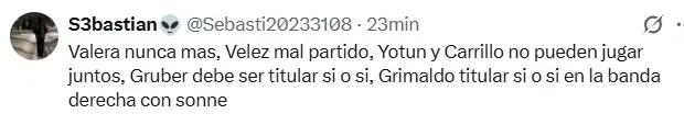 Pero la crítica no fue solo individual. También se cuestionaron decisiones colectivas: la convivencia de Yoshimar Yotún y André Carrillo en el mediocampo, la falta de minutos para Joao Grimaldo, y el pedido de mayor protagonismo para Fabio Gruber y Oliver Sonne.