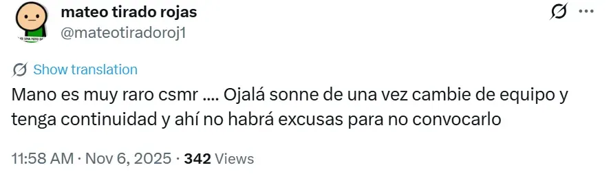 En redes sociales, los hinchas expresaron su malestar con la decisión, cuestionando los criterios para definir las convocatorias. “Nuevamente pidió estar fuera o usaron el ‘sentido común’ de no convocarlo porque no tiene minutos? Pero convocaron otra vez Bryan Reyna”, escribió un usuario en Twitter, reflejando el sentir de muchos fanáticos que consideran que Sonne merecía un lugar.