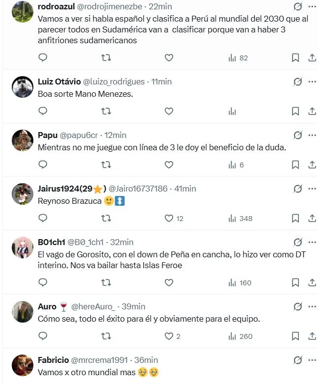 Sin embargo, también hubo mensajes más equilibrados, con parte de la afición entendiendo el contexto complicado que vive la Blanquirroja y apostando por el apoyo: “Como sea, todo el éxito para él y obviamente para el equipo”, reflejando que, pese a las dudas, el deseo de que le vaya bien sigue intacto.