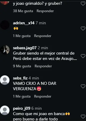 Cuando se confirmó la alineación de la Selección Peruana, hubo muchos comentarios pidiendo a dos jugadores en específico. A muchos hinchas los sorprendieron con las ausencias de Joao Grimaldo en el extremo derecho y de Fabio Gruber en la zaga central.