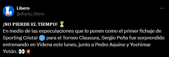 Se ha conocido mediante el diario Líbero que en la Videna ya se encuentra entrenando Sergio Peña, Yoshimar Yotún y Pedro Aquino pensando en las Eliminatorias. El DT nacional sabe que necesita a todos en gran forma y viendo que estos futbolistas no están teniendo ritmo, los está ayudando a estar en forma.