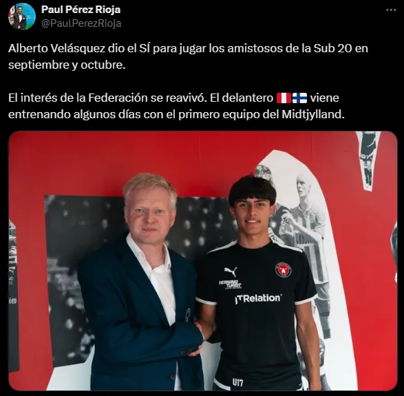 Mediante sus redes sociales el periodista Paul Pérez Rioja dio a conocer la gran noticia sobre el atacante. El cual viene preparándose para una nueva temporada en Dinamarca en la cual por sorpresa ha tenido la oportunidad de entrenar con el primer equipo. Demostrando un gran nivel que seguramente podrá ser aprovechado por el Perú.
