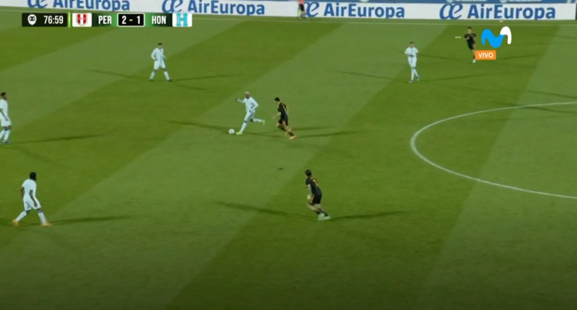 Honduras, que tiene poca vocación ofensiva, ataca a Perú por la banda derecha y, en ese sentido, hace daño, pero no tanto. Ahora, apunte, si fuera otro rival con más jerarquía, ahí sí habrían grandes problemas para Perú.