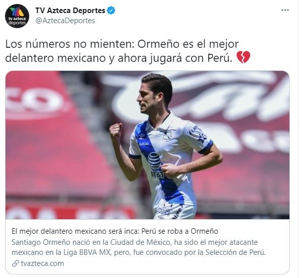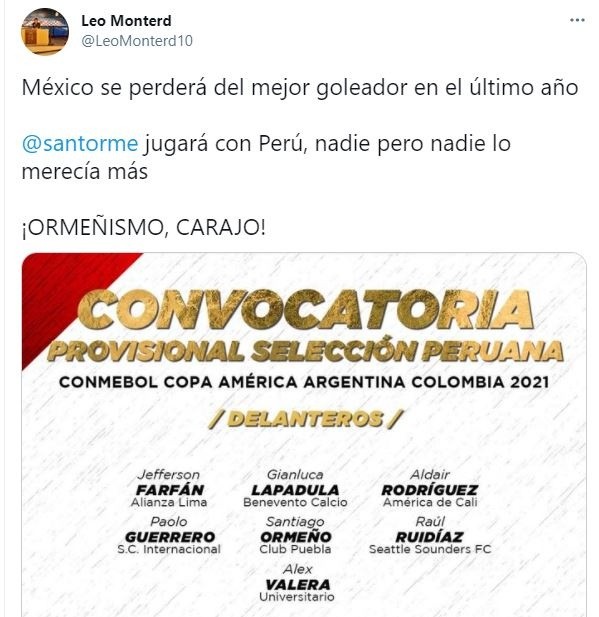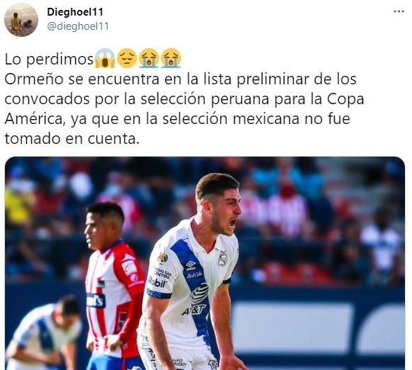 La reacción de la prensa mexicana, de fanpage y de hinchas fue de tristeza al conocer que Santiago Ormeño ya fue convocado a la selección peruana y tiene grandes posibilidades de jugar la Copa América.