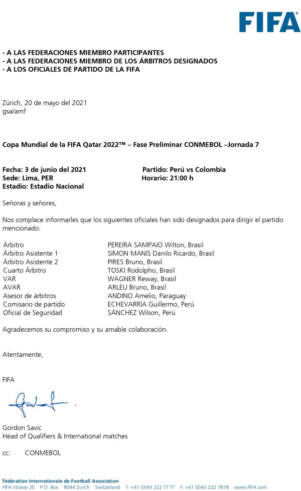 En el documentos se lee que el principal será el juez brasileño Wilton Sampaio. Simón y Pires serán los asitentes. Todos, como siempre, comparten nacionalidad.
