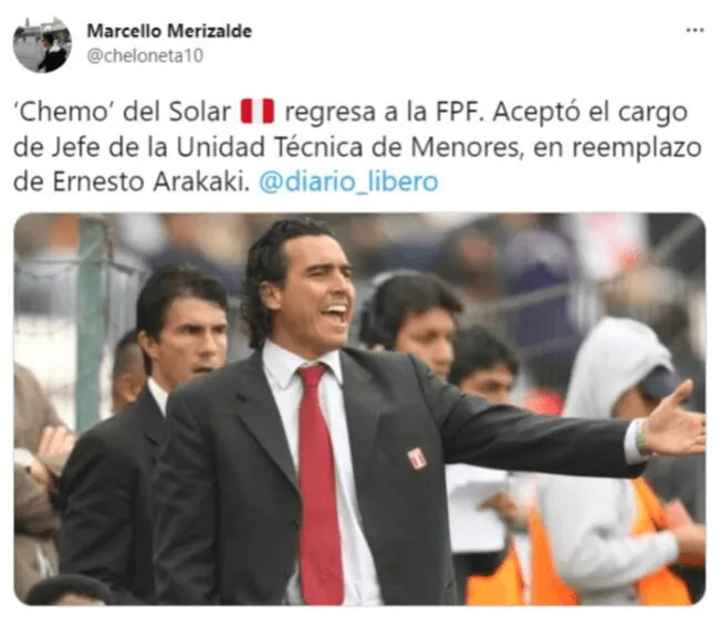 Según el periodista del diario Líbero, Marcello Merizalde, ahora José Del Solar ocupará el puesto de Jefe de la Unidad Técnica de Menores de la Bicolor.