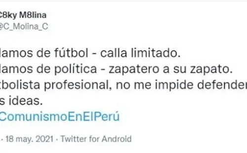 Ante los cuestionamientos en las redes sociales, el exjugador de Alianza Lima, Coky Molina quien hoy milita en Cienciano, mostró su apoyo por sus colegas, argumentando que ser futbolista no hace te hace ajeno a defender tus ideas.