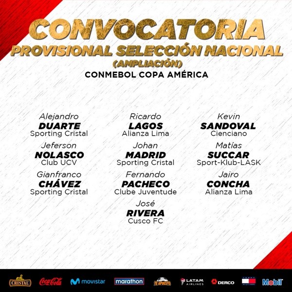 Entre ellos estuvo Alejandro Duarte, Lagos, Concha, Gianfranco Chávez y muchos otros. La sorpresa, sin duda, fue la de Johan Madrid que ni siquiera es titular en Sporting Cristal.