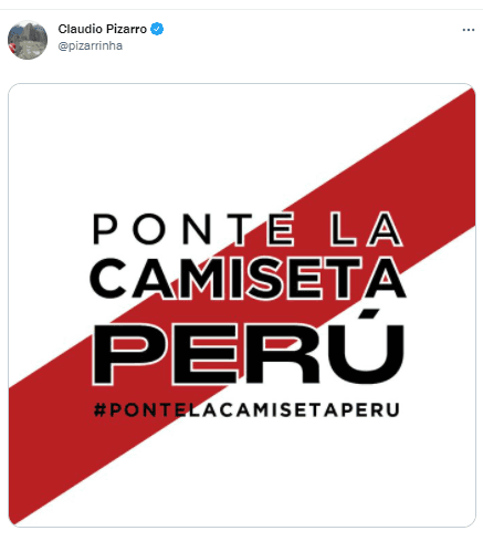 Lo que colocó ‘Pizarrinha’ en su twitter principal fue lo siguiente: “Ponte la camiseta Perú #PONTELACAMISETAPERU”. Generando muy rápido las reacciones de diversos aspectos. Algunos apoyando su posición, otros recordando sus momentos más trágicos con ‘La Blanquirroja’.