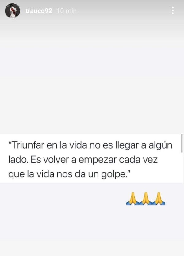 “Triunfar en la vida no es llegar a algún lado. Es volver a empezar cada vez que la vida nos da un golpe”, escribó en sus redes. Lo particular de esto es que esta frase la dijo justamente este jueves el Pepe Mujica en su reunión con Pedro Castillo.