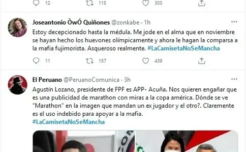 Las redes, entonces, explotaron. Al hashtag #PonteLaCamisetaPerú apareció su respuesta #LaCamisetaNoSeMancha. Hubo casi 10 mil menciones de cada uno.