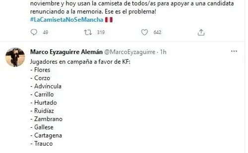 No se supo si era una campaña de marketing para vender camisetas o si estaban apoyando a Keiko Fujimori, que se apropio de la camiseta de la Selección Peruana y hace sus mitines con el escudo de la FPF. Esto último viene siendo investigado por los vínculos de Lozano con Acuña y de este con Keiko.