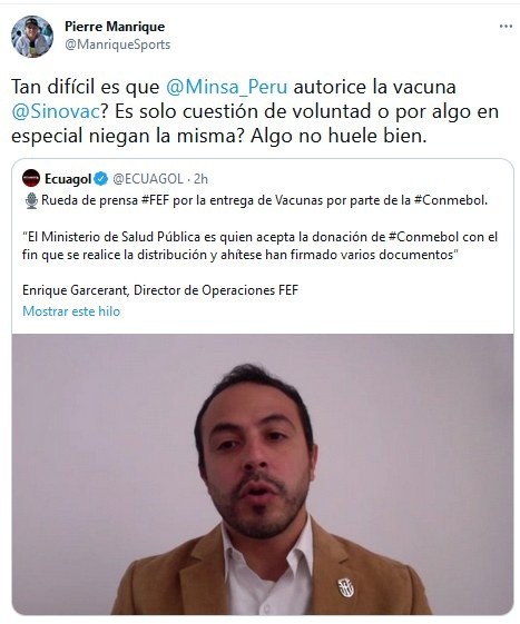 “Tan difícil es que Minsa autorice la vacuna Sinovac? Es solo cuestión de voluntad o por algo en especial niegan la misma? Algo no huele bien”, escribió quien sacó la primicia en su momento sobre el doping de Guerrero.