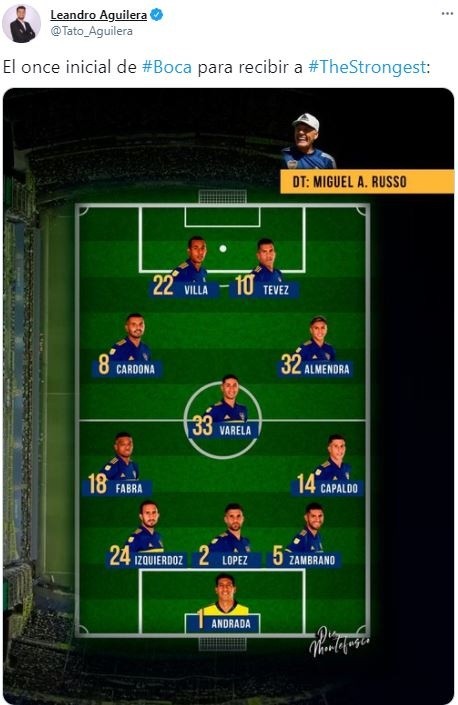 Una de las novedades en el once de Miguel Ángel Russo es la vuelta del defensor peruano Carlos Zambrano, quien luego de superar una lesión vuelve a ser tomado en cuenta.