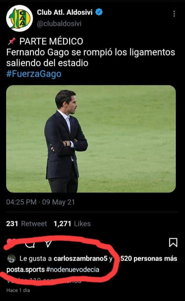 “En esta oportunidad el que pisó el palito fue el defensor xeneize Carlos Zambrano. El peruano, a través de su cuenta de Instagram, le puso like a una publicación que se mofaba de Fernando Gago, actual entrenador de Aldosivi y exfutbolista de la Ribera”.