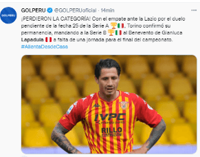 Gianluca Lapadula no pudo salvar a su equipo, pero tampoco su equipo pudo salvar al goleador. Benevento culminará esta temporada en zona roja, lo que invita a la institución italiana a jugar la Serie B, una noticia negativa para todas las personas del fútbol peruano.
