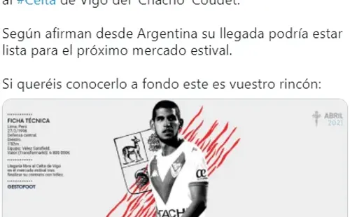 “Luis Abram ha sido relacionado en los últimos meses al #Celta de Vigo del ‘Chacho’ Coudet. Según afirman desde Argentina su llegada podría estar lista para el próximo mercado estival. Si queréis conocerlo a fondo este es vuestro rincón”. Abriendo este texto con un titular muy llamativo tanto para la prensa como el público seguidor.