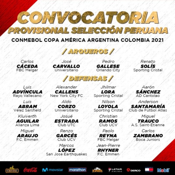 La Copa América 2021 en Colombia y Argentina está a la vuelta de la esquina, eso lo sabe muy bien Ricardo Gareca, quien desde este momento ya está trabajando con miras este torneo continental de selecciones nacionales. Perú ya tiene una lista de futbolistas considerados previamente, el número de esta relación es de 50 profesionales.