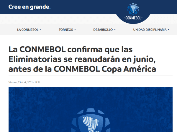 “El presidente de la FIFA, Gianni Infantino, quien participó de la reunión del Consejo de la Conmebol, declaró que las Eliminatorias son “importantísimas” y reconoció la necesidad de que las selecciones nacionales compitan con todo su potencial, en plena igualdad de condiciones. Para lograrlo, la FIFA asumió asimismo el compromiso de impulsar los cambios necesarios en el calendario internacional”, se detalló en el comunicado.