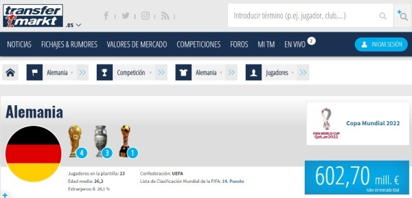 Sí, así como lo lee. La monstruosa separación no solo es deportiva, sino también económica. Tasados por la web Transfermarkt, el portal económico/deportivo tiene información sobre cuánto valen los planteles tanto de Alemania como de Perú.