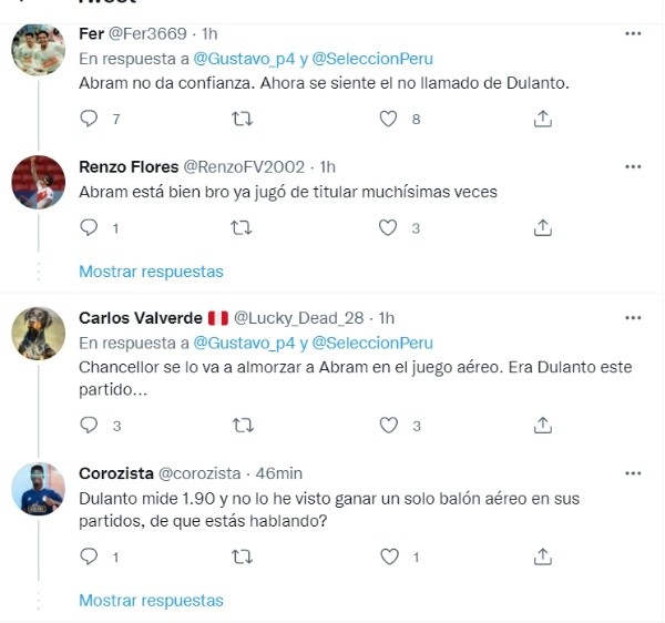 La baja de Alexander Callens le daría oportunidad a regresar al equipo titular a Luis Abram, aunque en las redes sociales los hinchas de la ‘bicolor’ vienen pidiendo la convocatoria de Gustavo Dulanto, el jugadordel Sheriff era una posibilidad para esta convocatoria en las fechas 13 y 14, pero Ricardo Gareca no lo tomó en cuenta.
