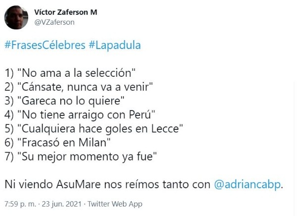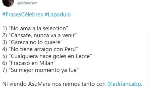 “No ama a la Selección”, “Cánsate, nunca va a venir”, “Gareca no lo quiere”, “No tiene arraigo con Perú”, “Cualquiera hace goles en Lecce”, “Fracasó en Milán”, “Su mejor momento ya fue”. Estos fueron algunos de los rótulos, de la prensa y aficionados, frente al actual atacante de la ‘bicolor’. Le ‘pegaron’ por todos lados, antes de verlo debutar con la ‘blanquirroja’.