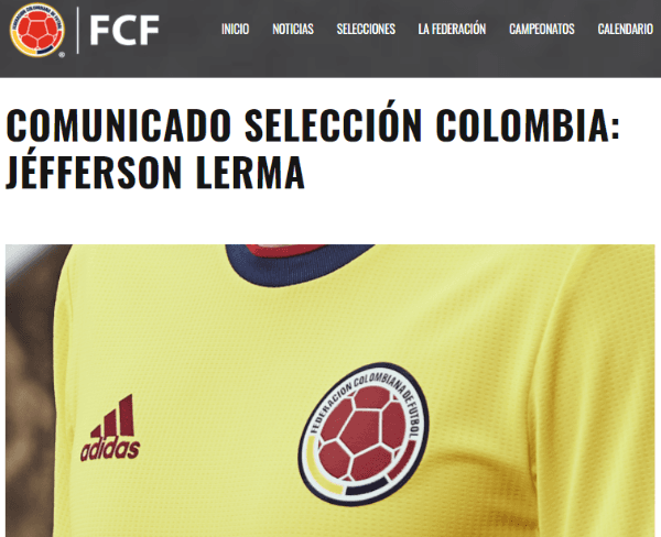Así lo informó las redes sociales del combinado sudamericano: “La Federación Colombiana de Fútbol informa que el jugador Jéfferson Lerma ha sido desconvocado para los juegos ante Perú y Argentina por las clasificatorias a la Copa Mundial de la FIFA Catar 2022, debido a que el mediocampista dio positivo para covid-19, según nos lo informó su club”.