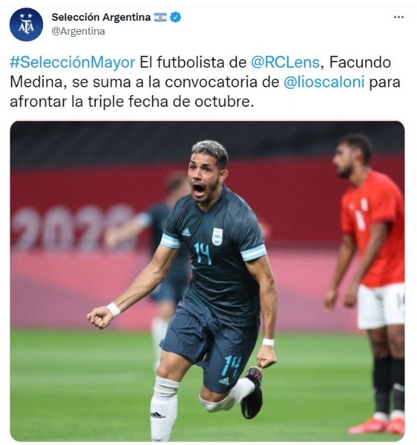 “El futbolista de Lens, Facundo Medina, se suma a la convocatoria de Lionel Scaloni para afrontar la triple fecha de octubre”, fue lo que dijeron en el comunicado de la selección argentina tras el urgente llamado del lateral izquierdo a la ‘albiceleste’, con quien cerrarían la lista por completo para prepararse los siguientes días.