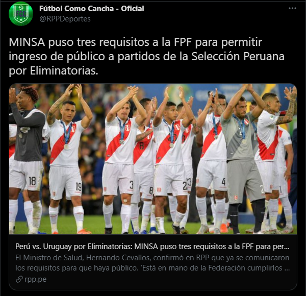 Queda esperar si la ‘Federación Peruana de Fútbol’ con lo que se le está solicitando desde el MINSA. Son detalles mínimos, son aspectos que se deberían cumplir sin problema alguno, todo está en la cancha de Agustín Lozano y todo su equipo técnico.
