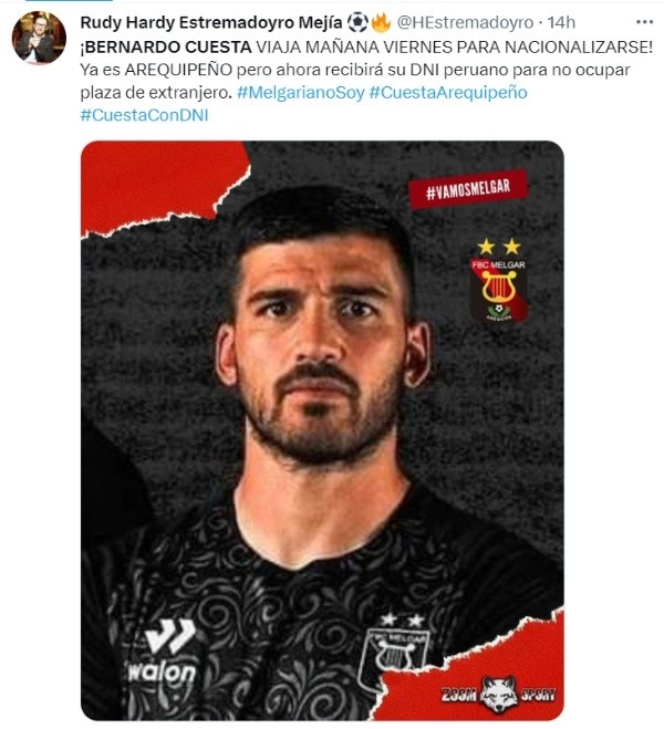 En ese sentido, y con todos los papeles en regla, Bernardo Cuesta podría ser tranquilamente convocado a la Selección Peruana. Recordemos que el técnico Juan Reynoso conoce el juego del delantero argentino pues lo dirigió en FBC Melgar durante las temporadas 2014, 2015 y 2016.
