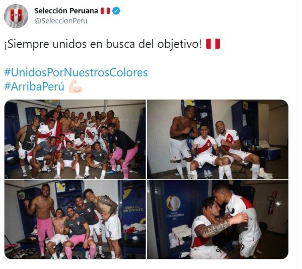 Perú viene de ganarle a Colombiasumando así sus primeros tres puntos y, también, su victoria inicial en la era del estratega argentino Ricardo Gareca. Esteresultado permite a la ‘bicolor’ resurgir en la Copa América 2021 y luchar por su clasificación a los cuartos de final, en la edición 47 de este certamen. Así pues, tras el pitazo final, los jugadores de la ‘Blanquirroja’ festejaron en el vestuario el importante triunfo.