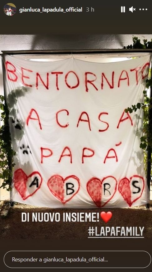 El recibimiento de su familia a ‘El Bambino’ fue con una gran banderola, que decía “Bienvenido a casa Papá”. Gianluca Lapadula, visiblemente emocionado por el gesto,publicó enInstagram la sorpresa que le dieron al llegar a su hogar, y poniendo “Juntos de nuevo”, todas estas frases en italiano. El delantero se tomará un breve descanso luego de disputar durante un mes el duro torneo continental.