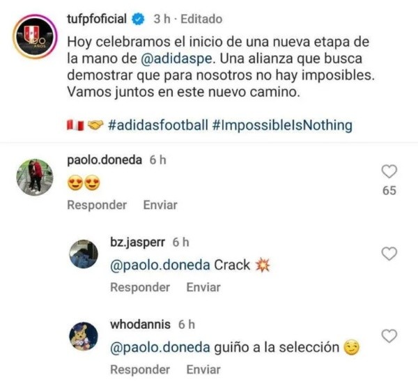 Colocando la información en contexto, todo empezó en la red social Instagram. Publicando recientemente la cuenta de la Selección Peruana su nueva alianza estratégica con la marca deportiva adidas, una reacción, que podría tomarse como un “guiño”, no pasó desapercibida por los usuarios.