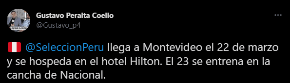 “Selección Peruana llega a Montevideo el 22 de marzo y se hospeda en el hotel Hilton. El 23 se entrena en la cancha de Nacional”. Desatando la locura entre las personas que piensan viajar a terreno rival, para alentar desde las graderías del mítico ‘Estadio Centenario’. Todo definido, solo queda esperar el momento de la verdad.