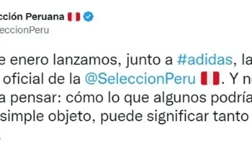 “Este 17 de enero lanzamos, junto a adidas, la nueva camiseta oficial de la Selección Peruana. Y nos pusimos a pensar: cómo lo que algunos podrían definir como un simple objeto, puede significar tanto para nosotros”, escribió la cuenta oficial de la Selección Peruana.