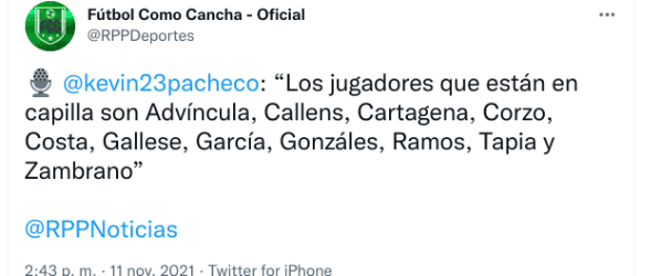 Y es queAdvíncula, Callens, Cartagena, Corzo, Costa, Gallese, García, Gonzáles, Ramos, Tapia y Zambrano están condicionados y de recibir una amonestación se perderían el duelo contra la Vinotinto. Esperamos eso no pase. Además, ya se podrá contra con Yoshimar Yotún.