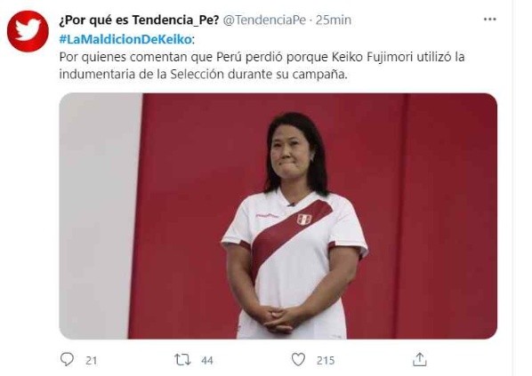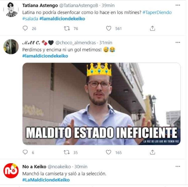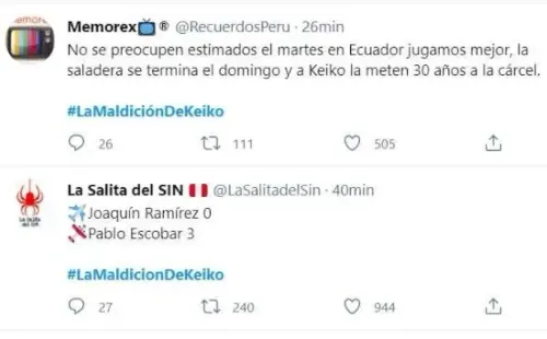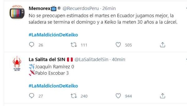 El hashtag #LaMaldicióndeKeiko fue usada en más de 15 mil oportunidades. Así también, mientras jugaban “TAPERdiendo” fue utilizada por los usuarios. Diburaron la K en la cancha.