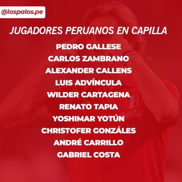 Cabe resaltar que 10 jugadores de la Selección Peruana se encuentran en capilla y esto podría influenciar si la ‘Blanquirroja’ clasifica al repechaje. El periodista Gustavo Peralta informo sobre el tema: “Si alguno de los jugadores de la Selección Peruana que están en capilla ven la amarilla ante Paraguay no podrán estar en el partido de repechaje de lograrse, ojalá, el objetivo. Los 10 son Gallese, Zambrano, Callens, Advíncula, Tapia, Yotún, Cartagena, Gonzales, Carrillo y Costa”, agregó el reportero en su cuenta de Twitter.