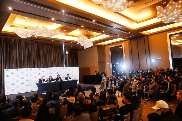 Las puertas del hotel se abrieron para la prensa alas 11:00 a.m. y como de costumbre, el protocolo de ingreso fue mostrando carnet de vacunación con las 3 dosis y surespectiva credencial de prensa. Cabe resaltar que en esta oportunidad no se realizó el proceso de acreditación acostumbradopor la FPF, puesto que la organización del evento fue manejada por una agencia y el mismo Ricardo Gareca.