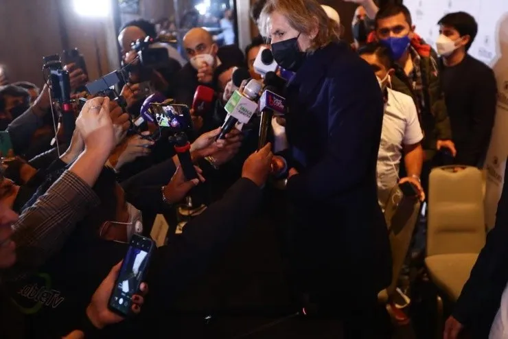 A pesar de que Ricardo Gareca dejó en claro que el evento había terminado,una gran cantidad de periodistas se abalanzaron a él y por unos30 segundos brindó unas breves palabras, a la prensa que intentaba buscar alguna otra declaración adicional. Sin embargo, la seguridad del hotel separó rápidamente a los comunicadores, yel ahora extécnico de la ‘Bicolor’ salió de la sala de conferenciaentre aplausos masivos de los asistentes.