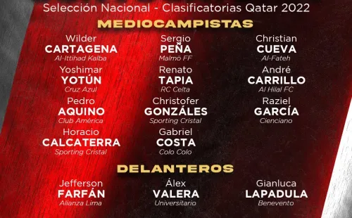 Los 28 convocados de Gareca para las Eliminatorias a Qatar 2022