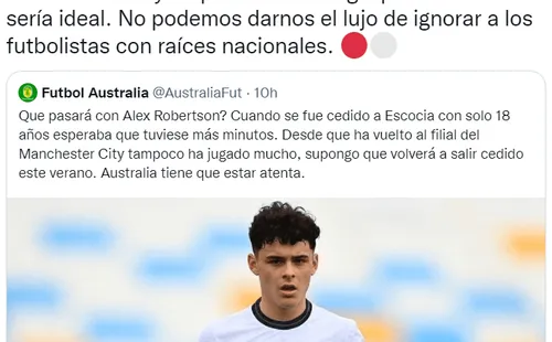 “Perú debe hacer un esfuerzo y volver a contactar a Alexander Robertson. Una invitación a un entrenamiento y un plan de estrategia para retenerlo sería ideal. No podemos darnos el lujo de ignorar a los futbolistas con raíces nacionales”, fue el mensaje publicado por el periodista Renzo Galiano, quien pide que el joven mediocampista sea tomado en cuenta por la FPF.