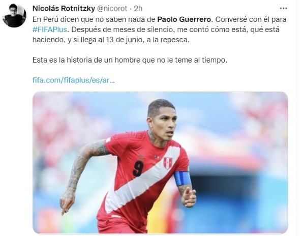 Paolo Guerrero se encuentra en Phoenix realizando su proceso de recuperación para estar al 100% y poder volver a los terrenos de juego. El delantero brindó una entrevista a FIFAdonde tocó el tema Selección Peruana y sus posibilidades de estar presente con la ‘Bicolor’ en la Copa del Mundo en Qatar 2022, siempre y cuando pueda superar el partido de repechaje.