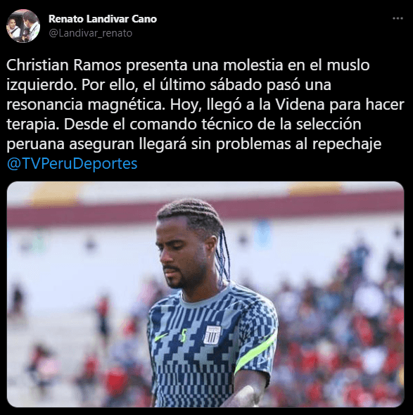 Sin embargo, una noticia reciente estaría moviendo la tranquilidad en VIDENA: “Christian Ramos presenta una molestia en el muslo izquierdo. Por ello, el último sábado pasó una resonancia magnética. Hoy, llegó a la Videna para hacer terapia. Desde el comando técnico de la selección peruana aseguran llegará sin problemas al repechaje”.