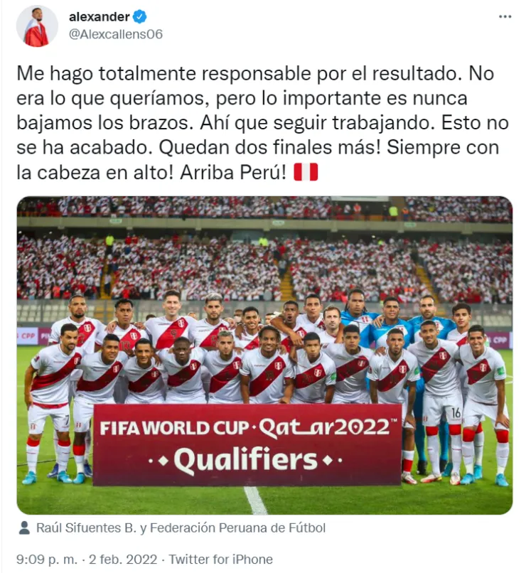 “Me hago totalmente responsable por el resultado. No era lo que queríamos, pero lo importante es nunca bajamos los brazos. Ahí que seguir trabajando. Esto no se ha acabado. Quedan dos finales más.Siempre con la cabeza en alto.¡Arriba Perú!”, fueron las palabras muy sentidas del defensor del New York City.