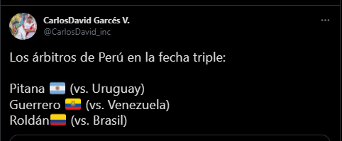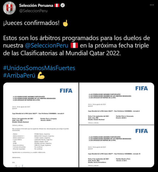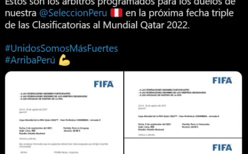 El detalle te lo comentamos a continuación. Uno por uno, estaremos repasando los jueces principales, asistentes, y las referees VAR. Es una fecha triple, donde Perú se estará jugando mucho para conseguir el ansiado ‘boleto’ al Mundial del próximo año.